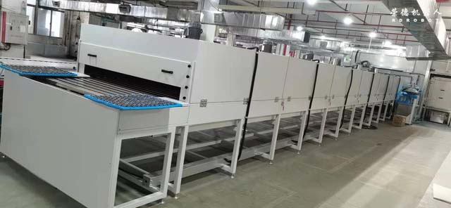 上件→預(yù)熱→自動噴A面→烘干→冷卻→半自動翻面→預(yù)熱→自動噴B面→烘干→冷卻→下件