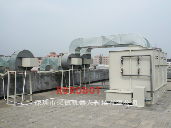 (1)廢氣處理設(shè)備設(shè)計成2套,一套處理噴涂倉的廢氣,一套處理涂層干燥、固化過程中產(chǎn)生的廢氣,設(shè)備放置在噴涂間頂上。
