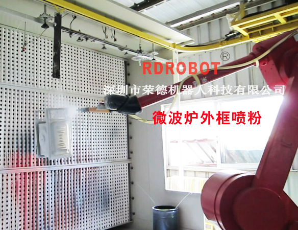 微波爐內(nèi)徑-外徑自動噴粉機(jī)器人-懸掛式噴粉生產(chǎn)線