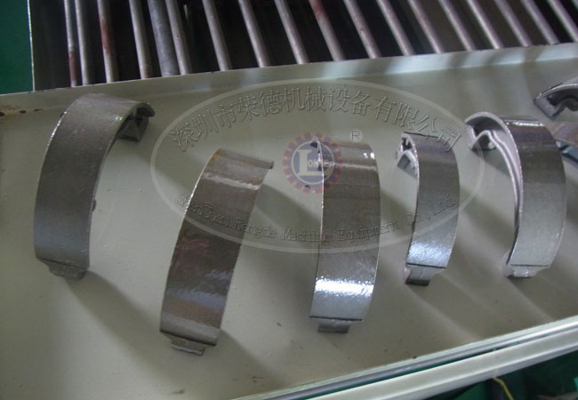 剎車片自動噴涂設備由自動噴涂部分、粉末固化部分、冷卻部分等組成,該設備的特點是節(jié)能效率高,使用雙槍30度噴涂,死角少,遠紅外粉末固化,上粉好,噴涂快,固化快,冷卻也快。